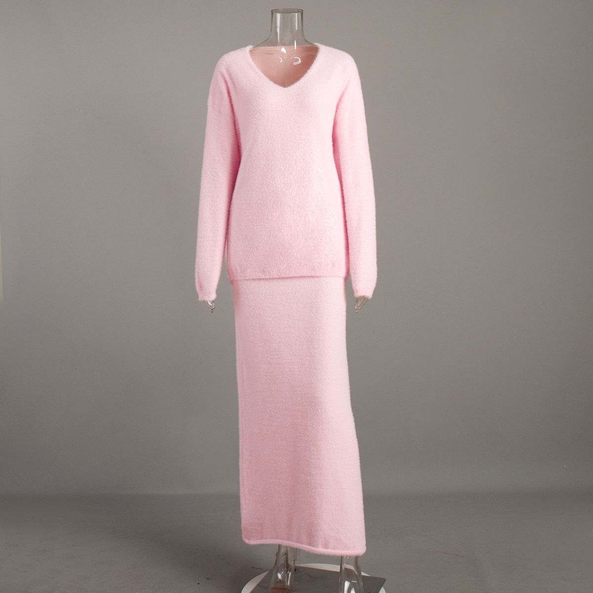 Gemaakt van 100% nylon en hoogwaardig polyester, biedt deze set met lange mouwen en lange rok warmte, zachtheid en een elegant vallende pasvorm.